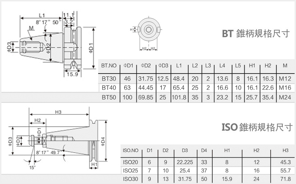 錐度為7:24 的通用刀柄通常有五種標準和規格,即NT(傳統型)、DIN 69871(德國標準)、IS07388/1(國際標準)、MAS BT(日本標準)以及ANSI/ASME(美國標準)。
