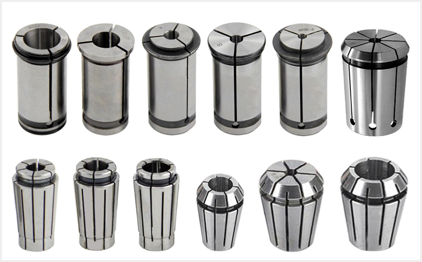 彈簧筒夾有16條開槽,允許一個較大的夾持范圍并同時擁有較好的徑向跳動誤差,分為ER8,ER11,ER16,ER20,ER25,ER32,ER40,ER50八種規格,可以滿足不同刀具的夾持范圍。精度在0.01mm至0.015mm內。