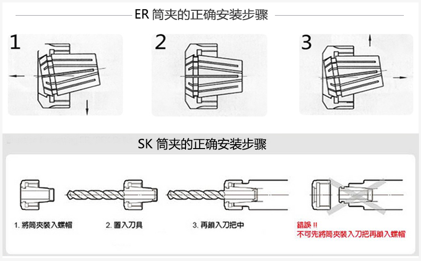 ![]() 彈簧夾頭安裝方法 |